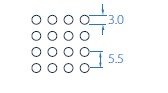 Perforating pattern P3L-S 3.0mm holes at 5.5mm square centres. Pattern open area 23.5%