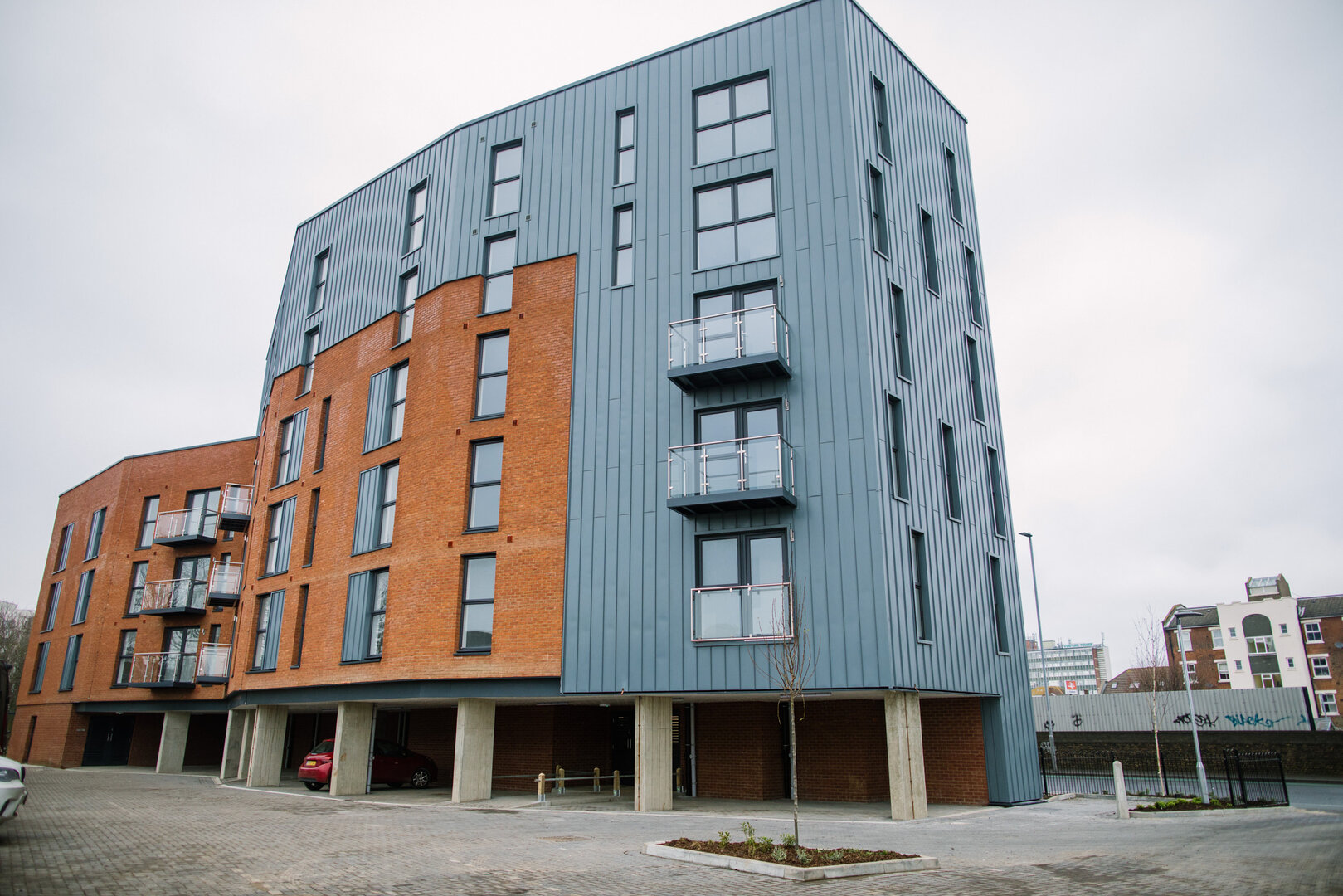 The two, six-storey buildings, built by PMC Construction for VIVID, provide a much-needed mix of 1-, 2- and 3-bedroom flats, with two designed specifically for wheelchair users. The exterior of the two buildings features a mix of red brick alongside Tata Steel’s Urban Seam® Façade in Merlin Grey, which was selected for its aesthetics, increased fire performance and longevity.