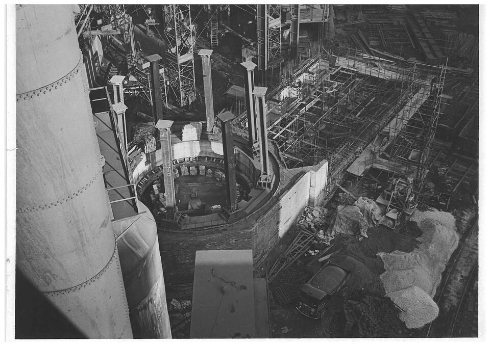 In what was a huge civil engineering undertaking, works included the foundations for blast furnaces, one of which was the largest in the world at the time, delivery of a reinforced concrete gantry for ore transportation, construction of a power house and the diversion of a river, a main sewer and British Railway lines. A quay wall was also extended to provide more berthing space at the works’ iron ore quay.