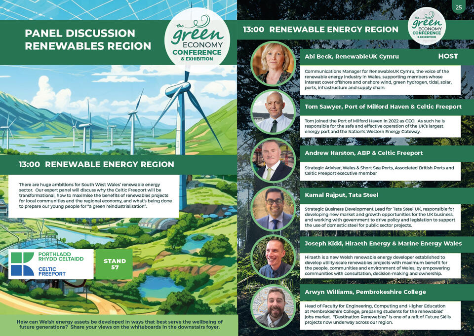 The Green Economy Conference is an opportunity for businesses and organisations to come together from across Pembrokeshire, Carmarthenshire, Swansea and Neath Port Talbot, to share knowledge and co-create a resilient future. With five insightful panel discussions and over 70 regional exhibitors, it will be a busy day of networking, learning and connecting!